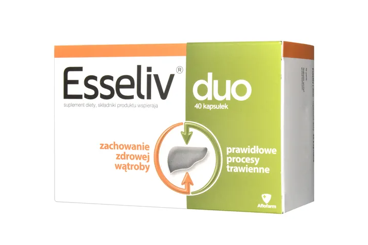 Esseliv duo - suplement diety zawierający składniki wspomagające zachować zdrową wątrobę oraz wspomagają prawidłowe procesy trawienne. Produkt przeznaczony dla osób dorosłych.